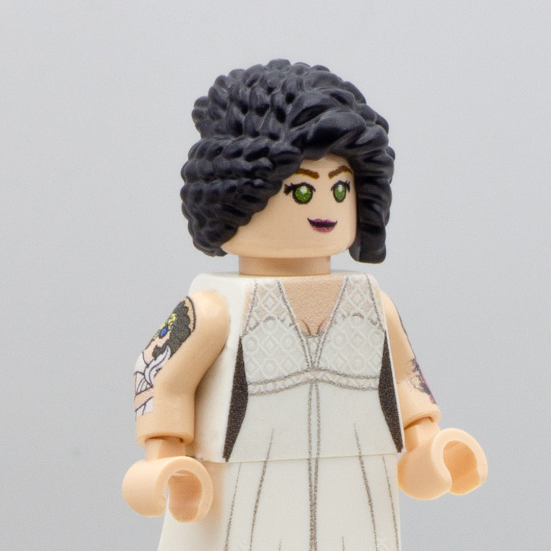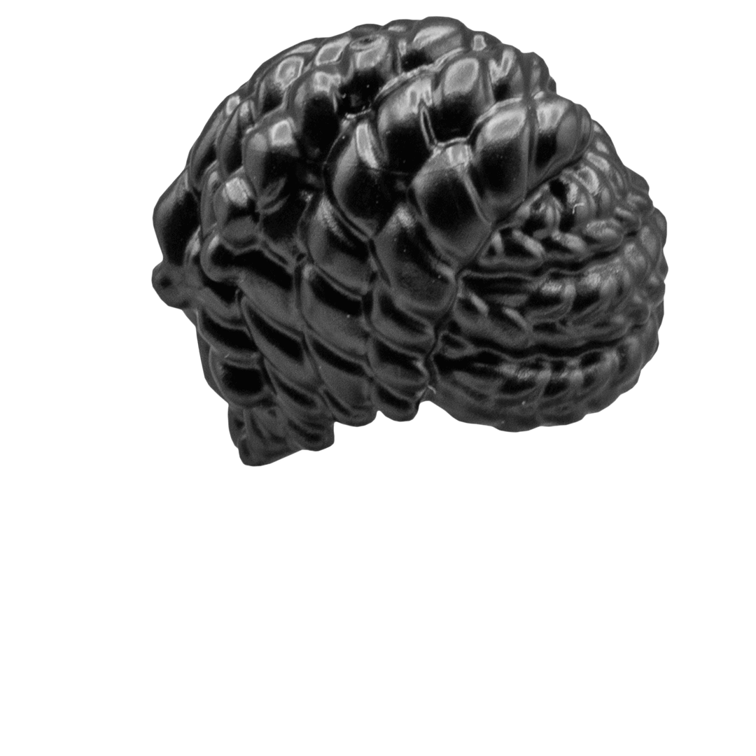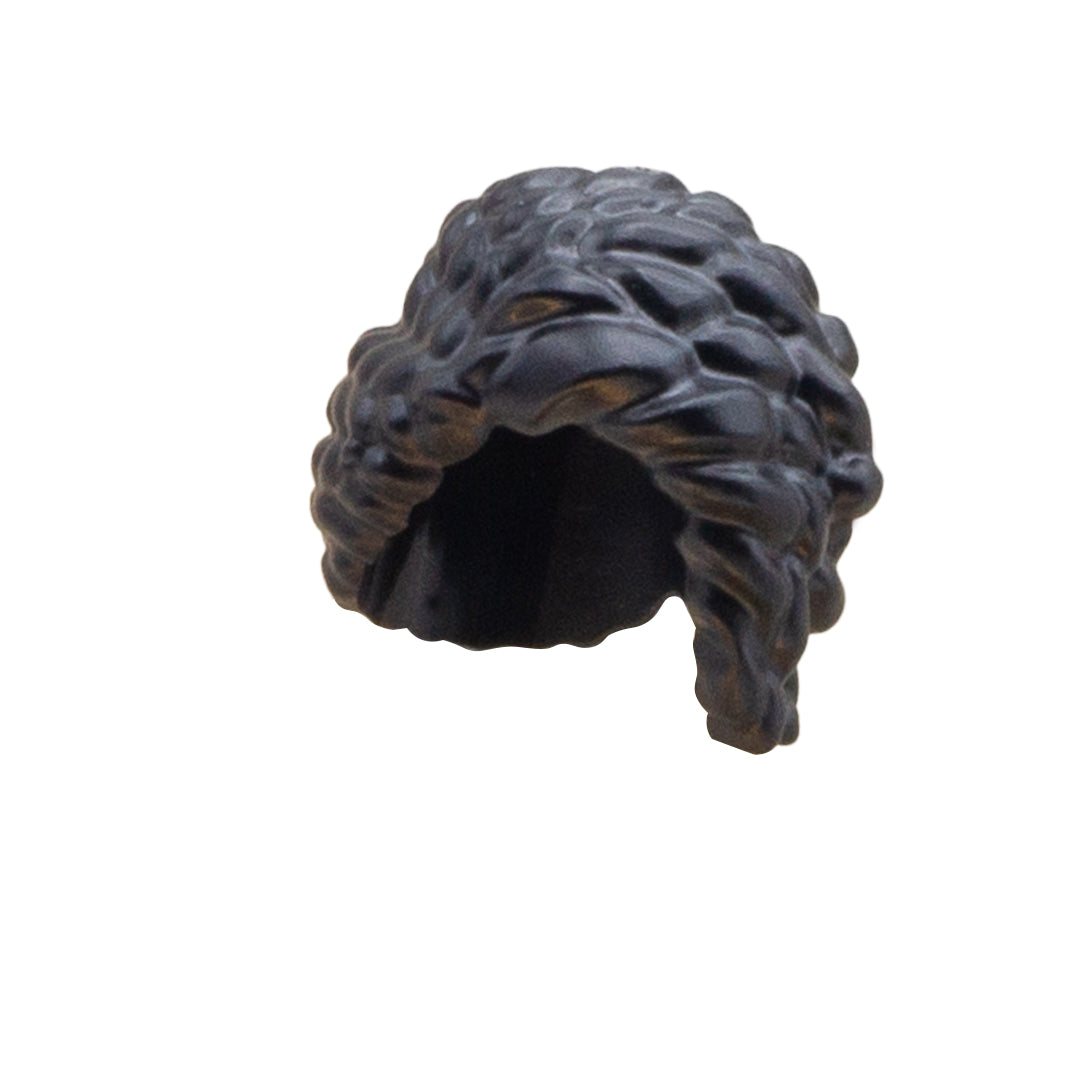 Elevate your minifigure's style with this black asymmetric braided up-do.