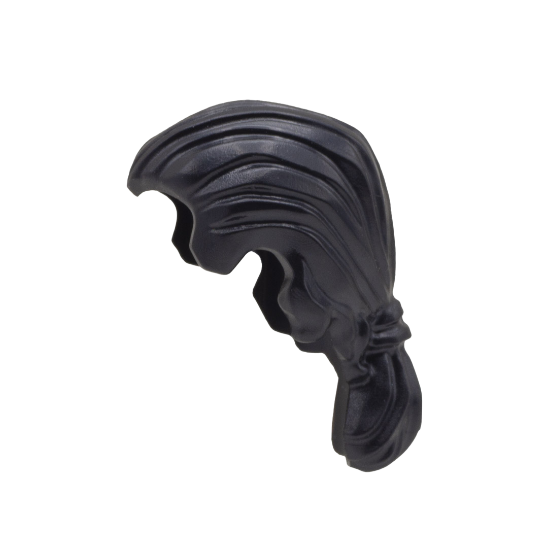 Black LEGO hair combed back into a ponytail, for the minifigure who likes to keep their hair out of the way! This piece also works well as a masculine ponytail.