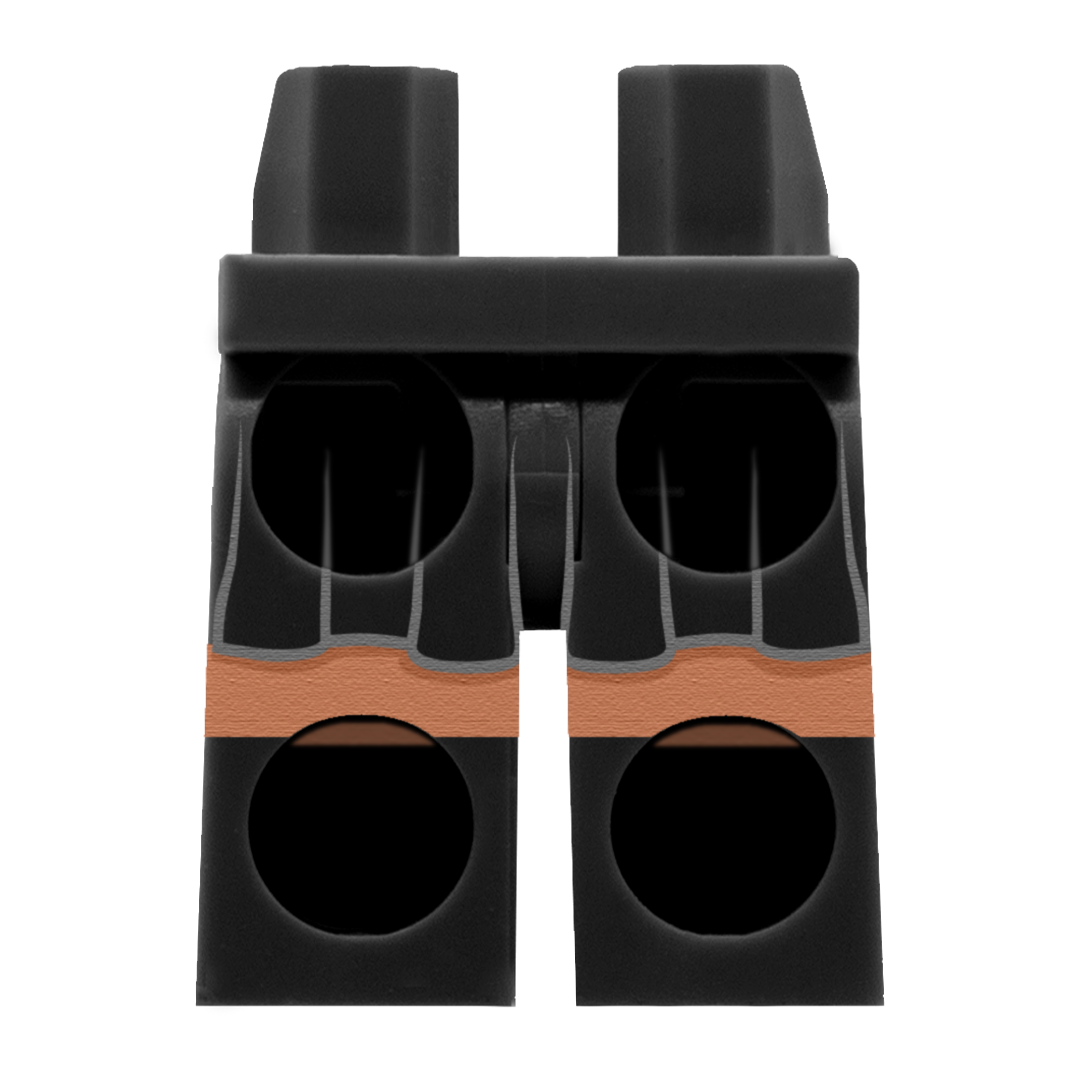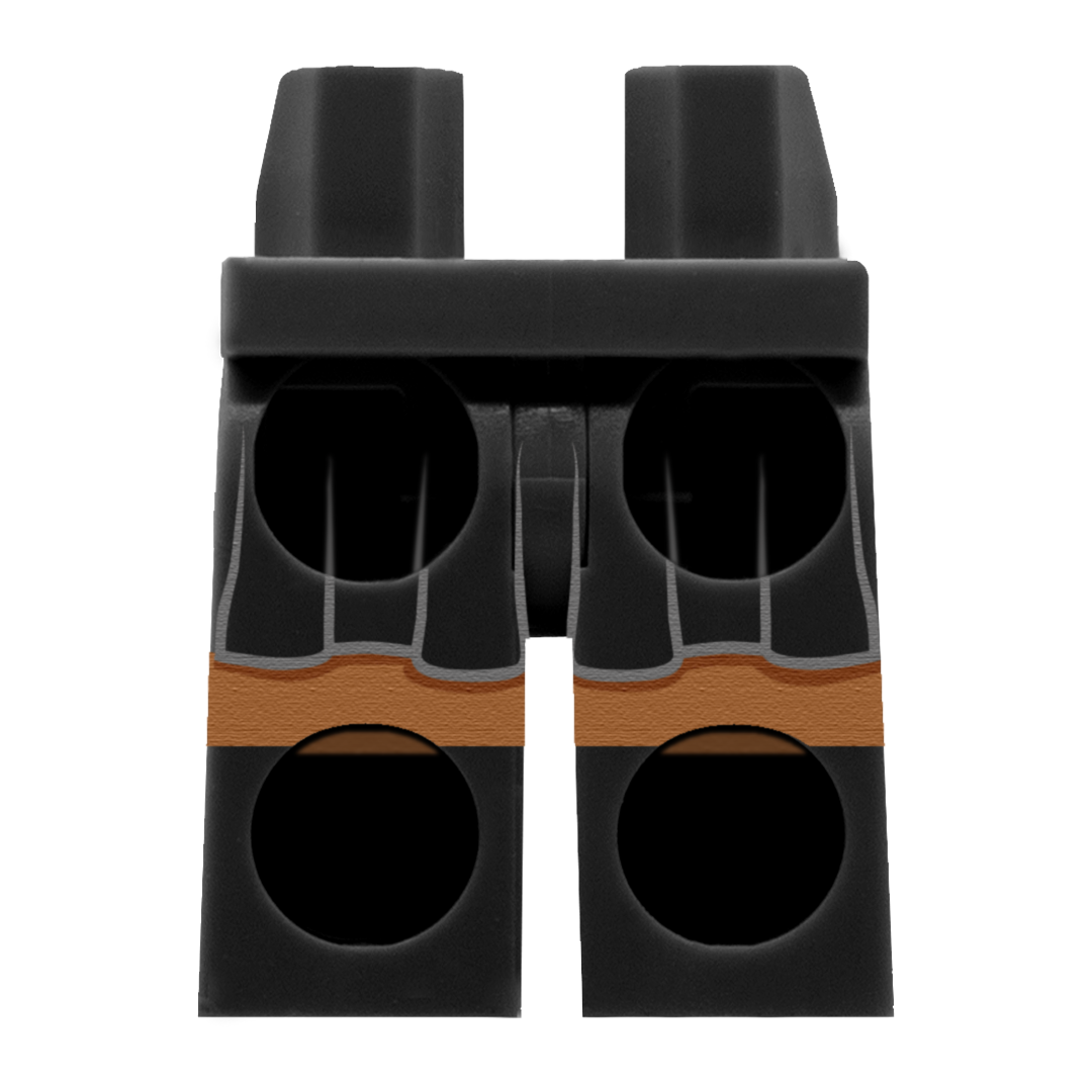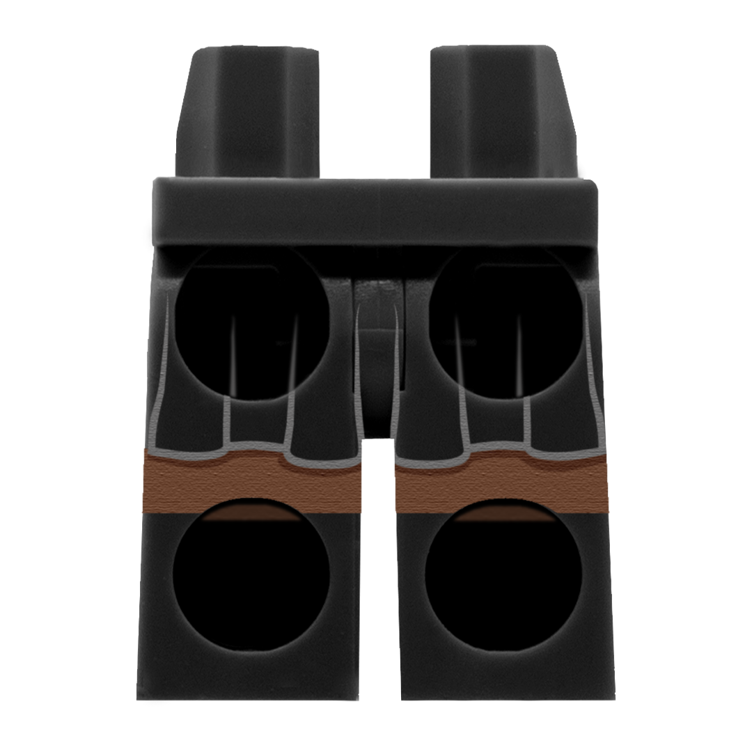 Black skirt custom printed onto LEGO minifigure legs, and includes printing on the sides of the legs. Available in different skin tones.