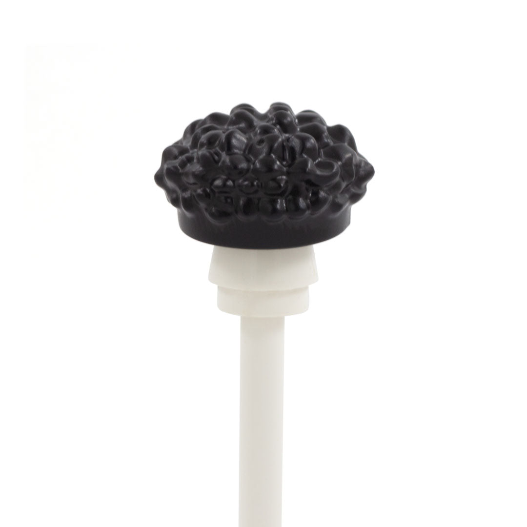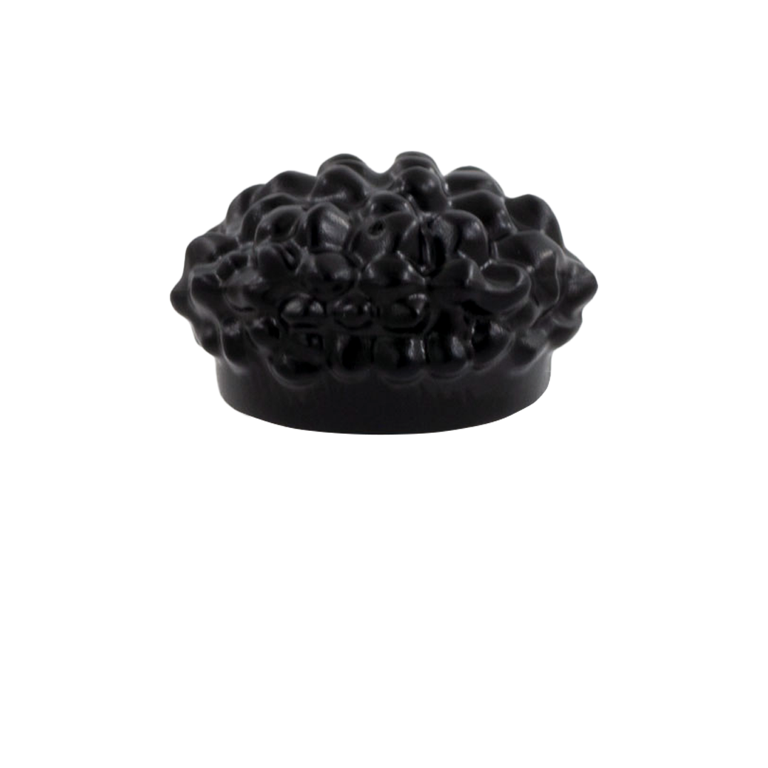 Black hair for your custom minifig. This hair has a curly top, with trimmed back and sides.