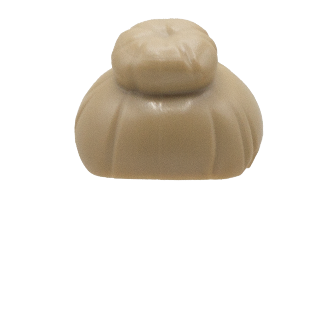 This dark blonde LEGO minifigure hair is arranged into a bun.