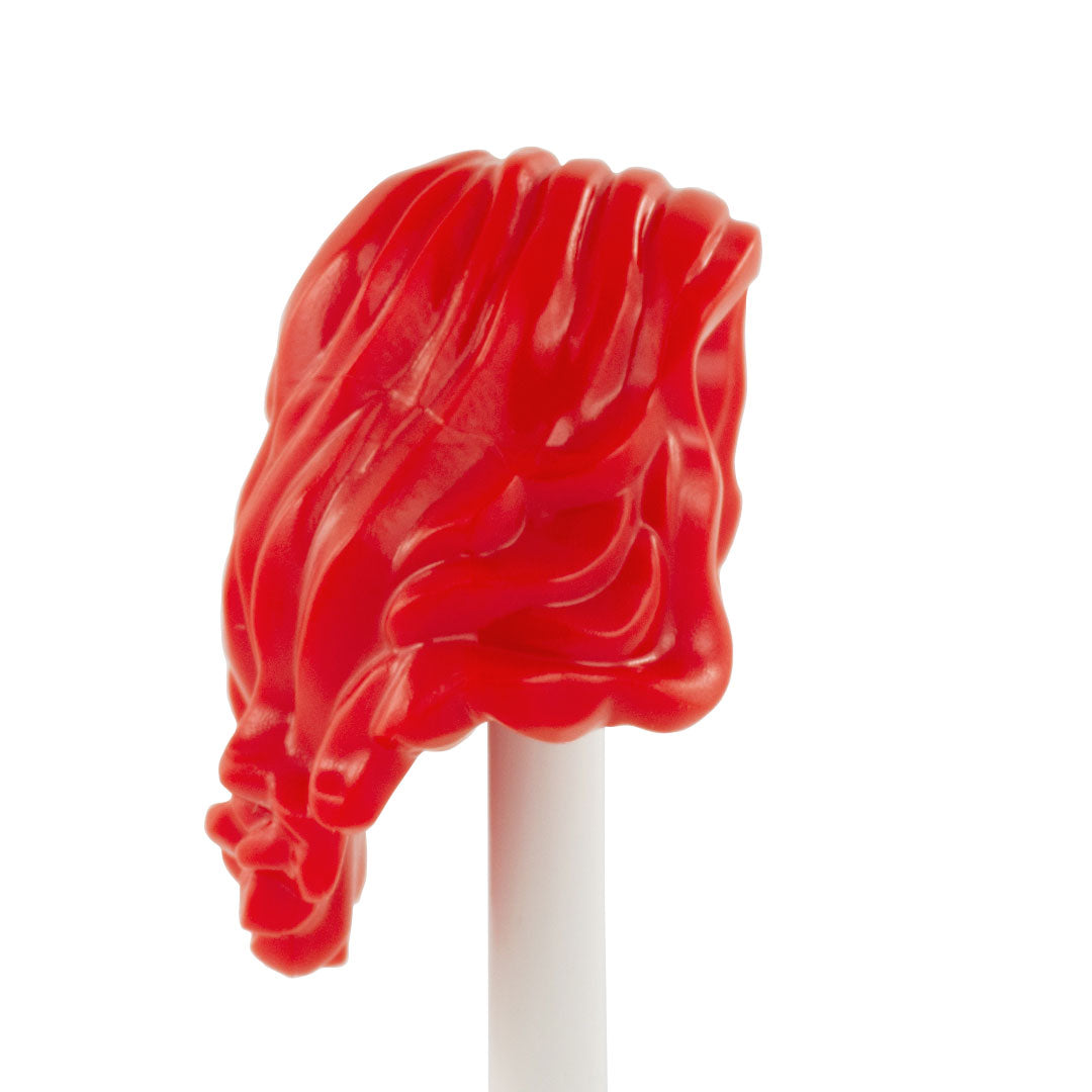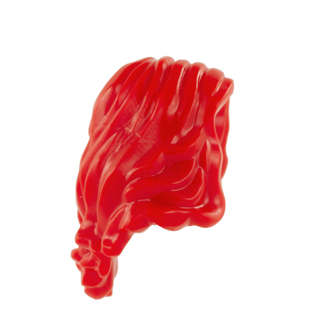 Bright red long cascading hair, a glamorous look for your LEGO minifigure.