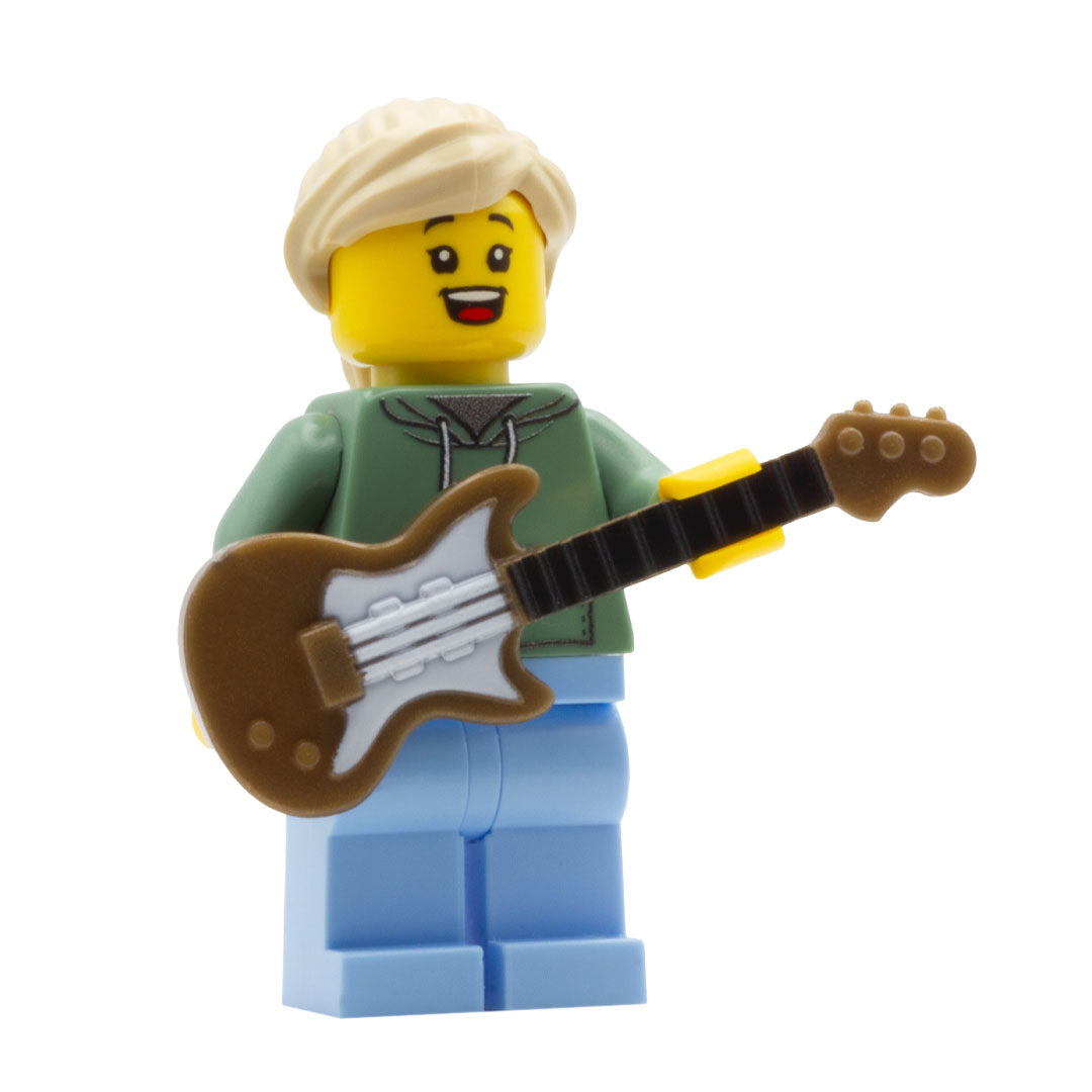 Bronze electric guitar. Made by Brickforge and compatible with Lego.