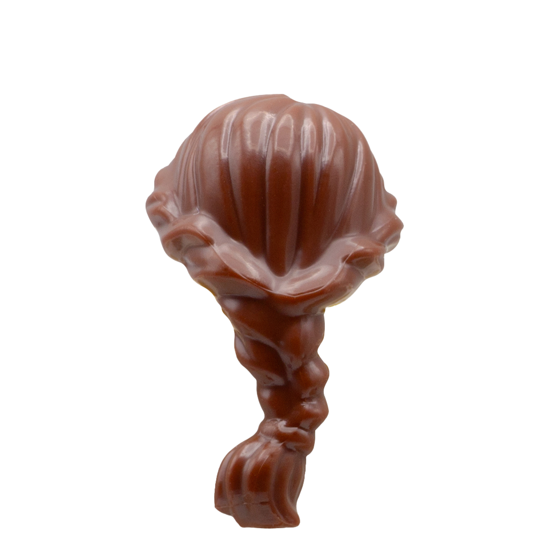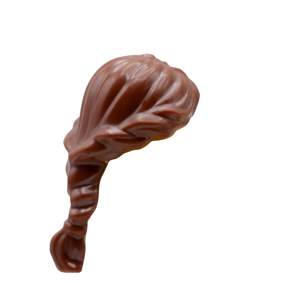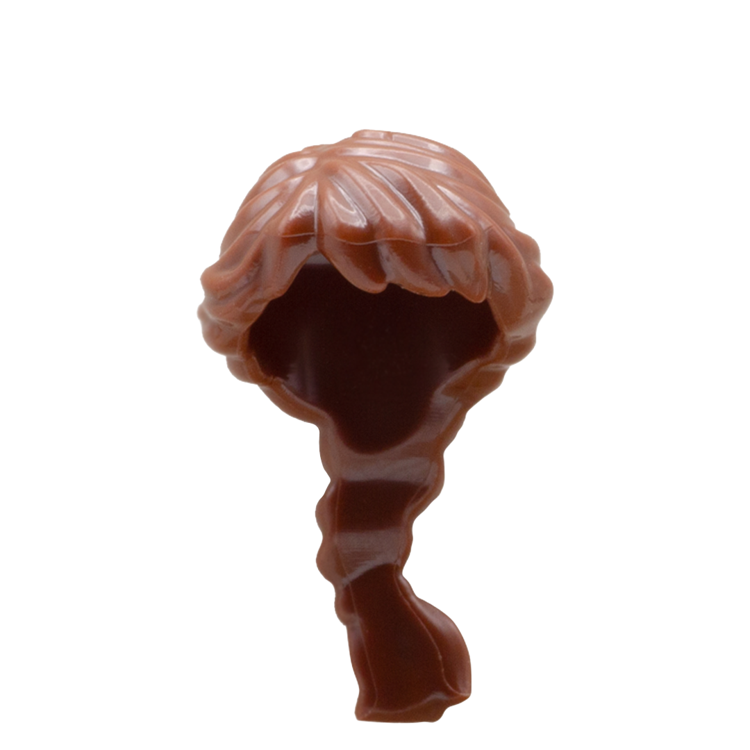 Brown long plaited hair for your LEGO minifigure, with a choppy fringe.