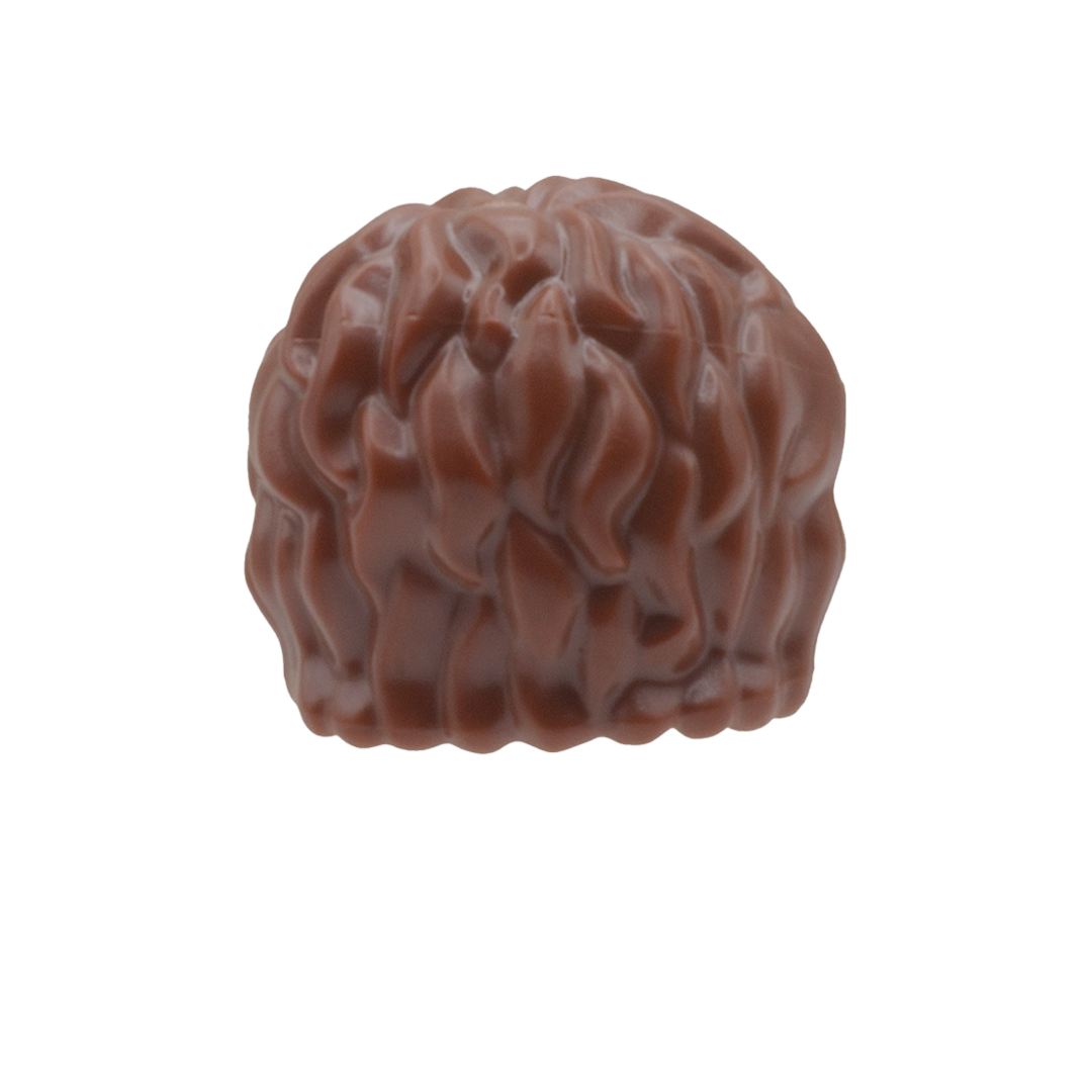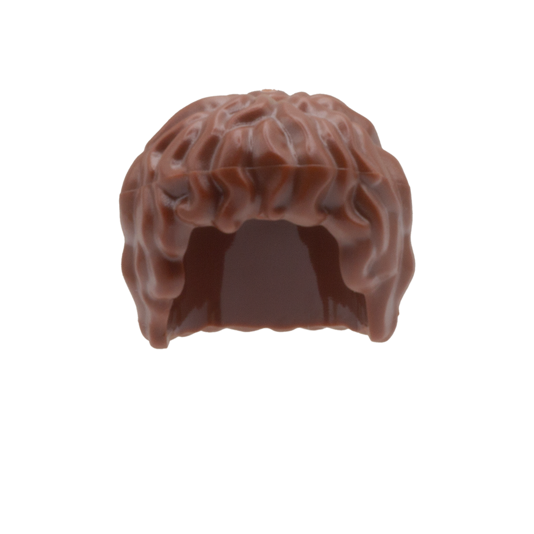 Brown mid-length, thick messy hair for your LEGO minifig.
