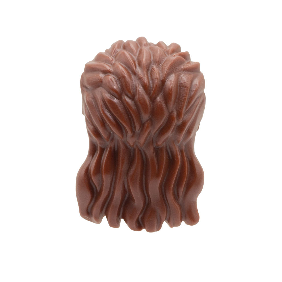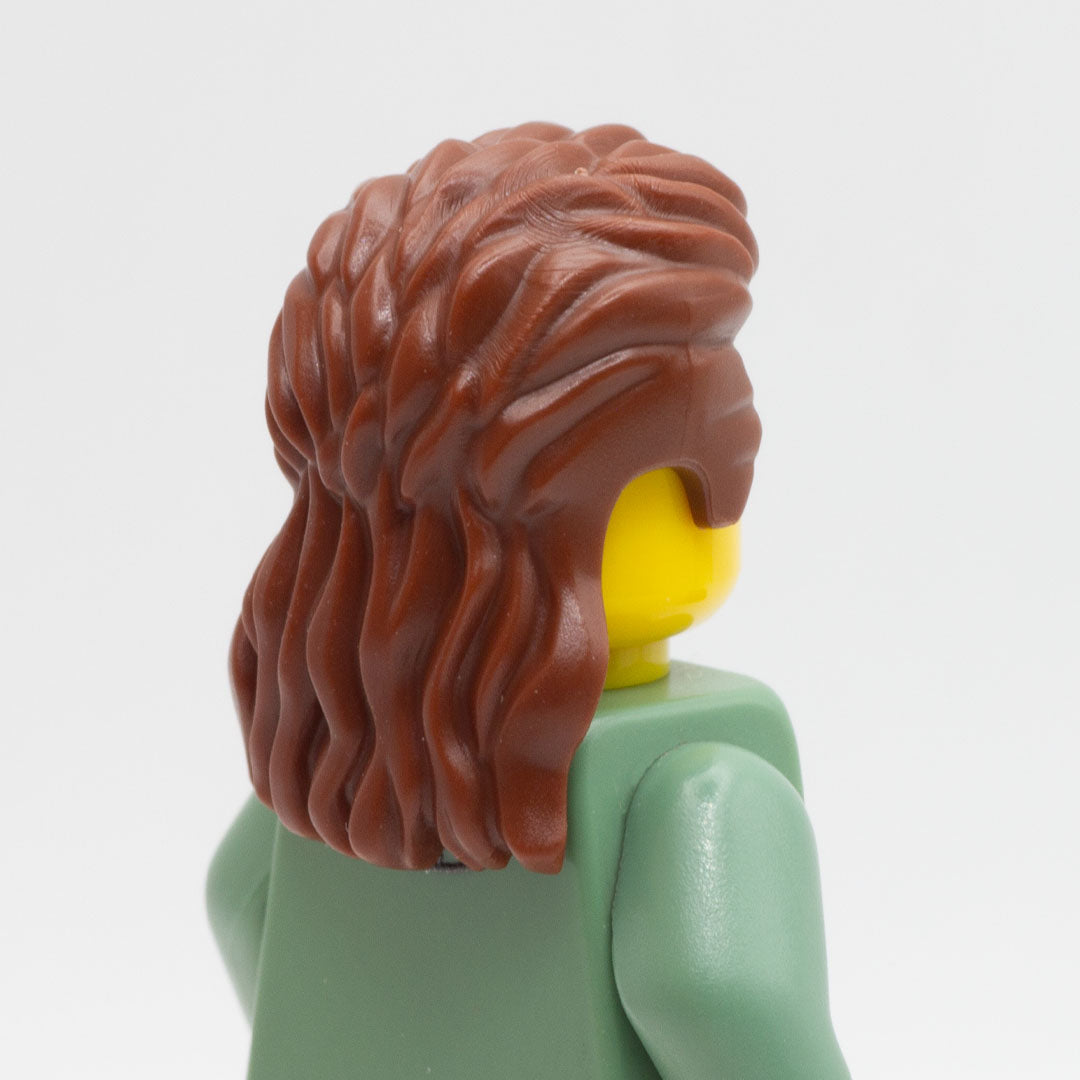 Shoulder-length brown LEGO mullet hair with tufted waves.