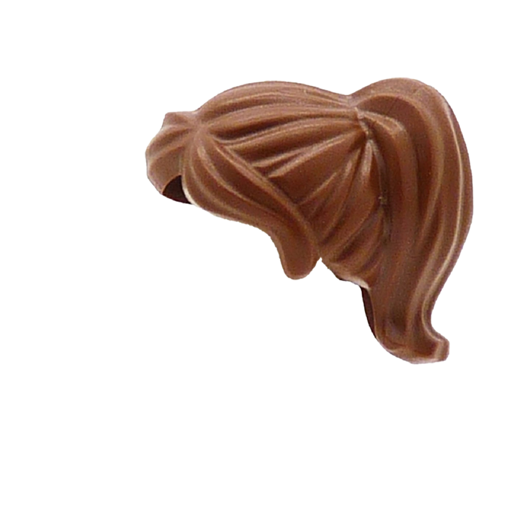 Brown hair in a ponytail with a swept fringe for your LEGO minifigure.