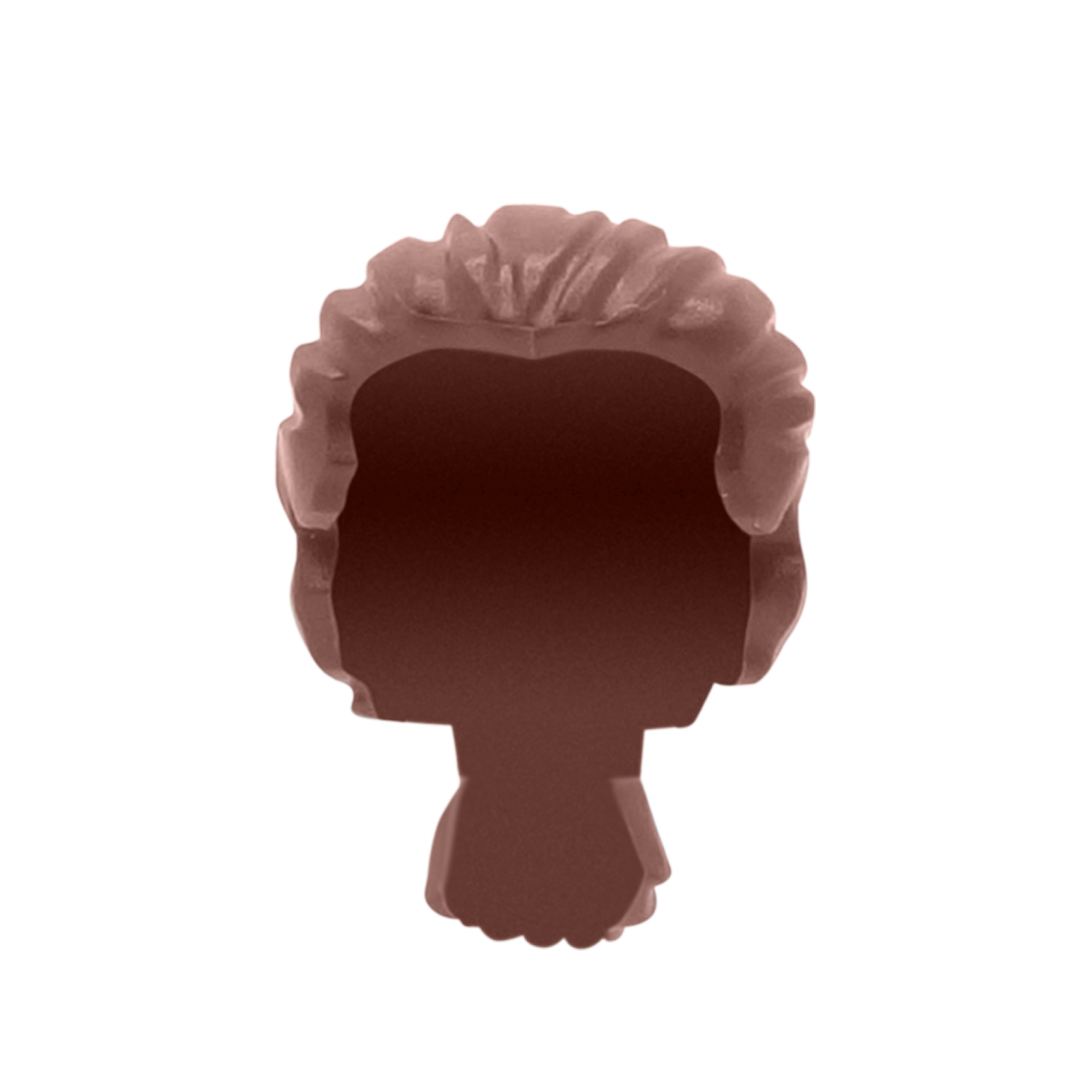 Brown LEGO hair combed back into a ponytail, for the minifigure who likes to keep their hair out of the way! This piece works well as a man's ponytail.