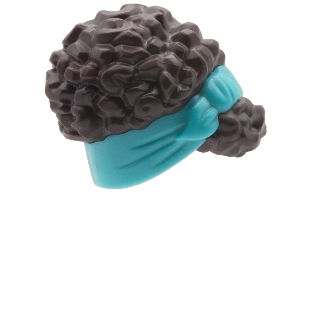 Dark Brown Curly Up Do with Teal Headband - LEGO Minifigure Hair