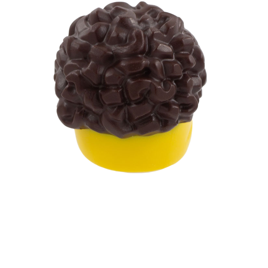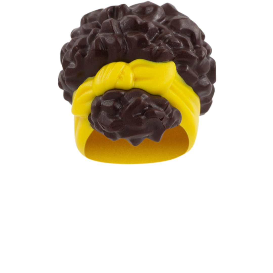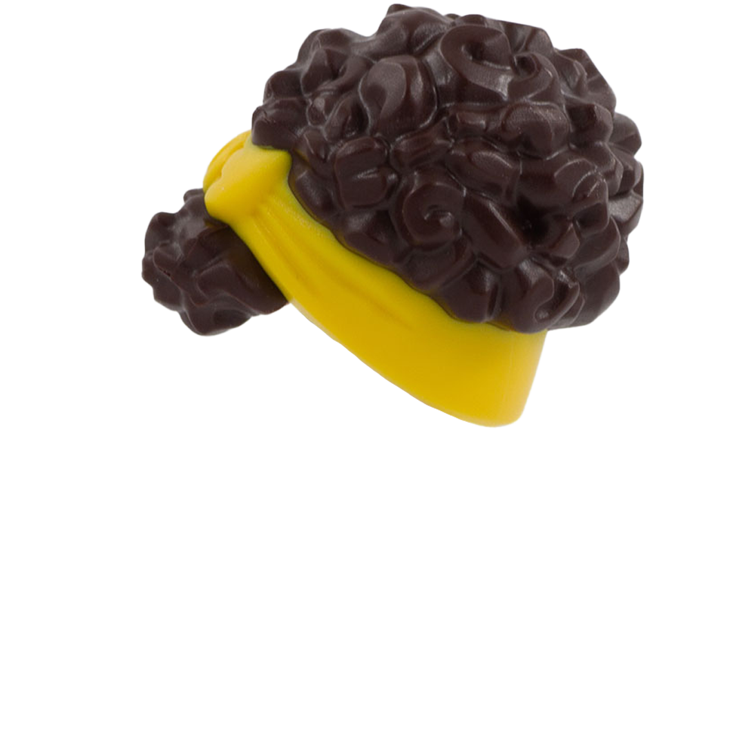 Dark Brown Curly Up Do with Yellow Headband - LEGO Minifigure Hair