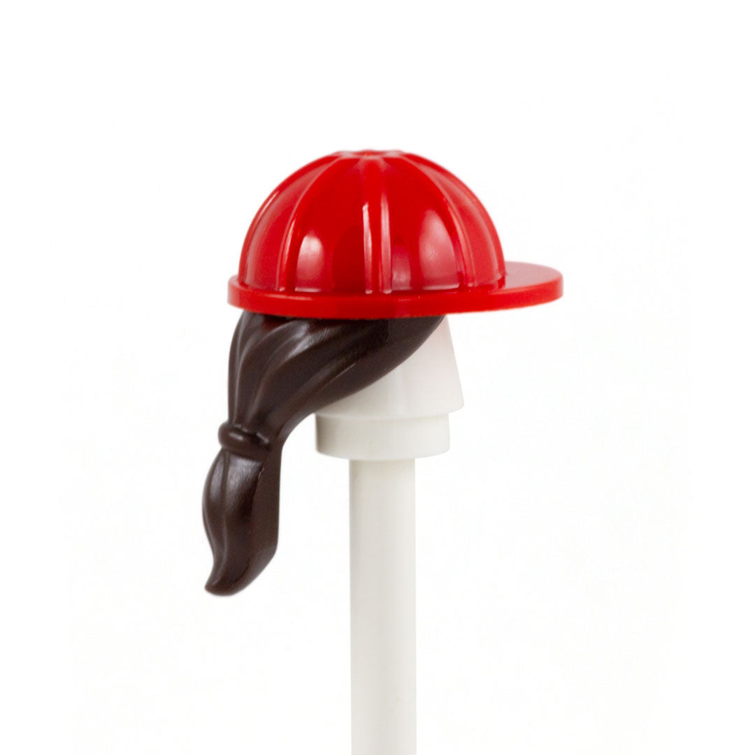 Dark Brown Ponytail with Red Hard Hat - LEGO Minifigure Hair and Hat