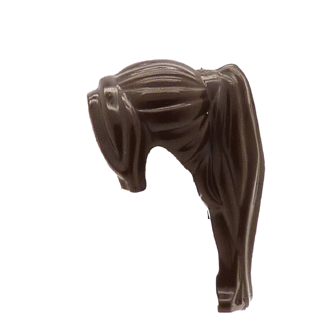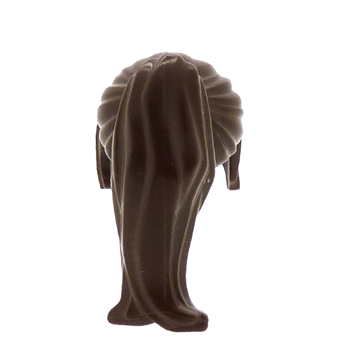 Dark brown long ponytail for your LEGO minifig. PLEASE NOTE that longer hair will obscure some of the design on the back of the minifigure.