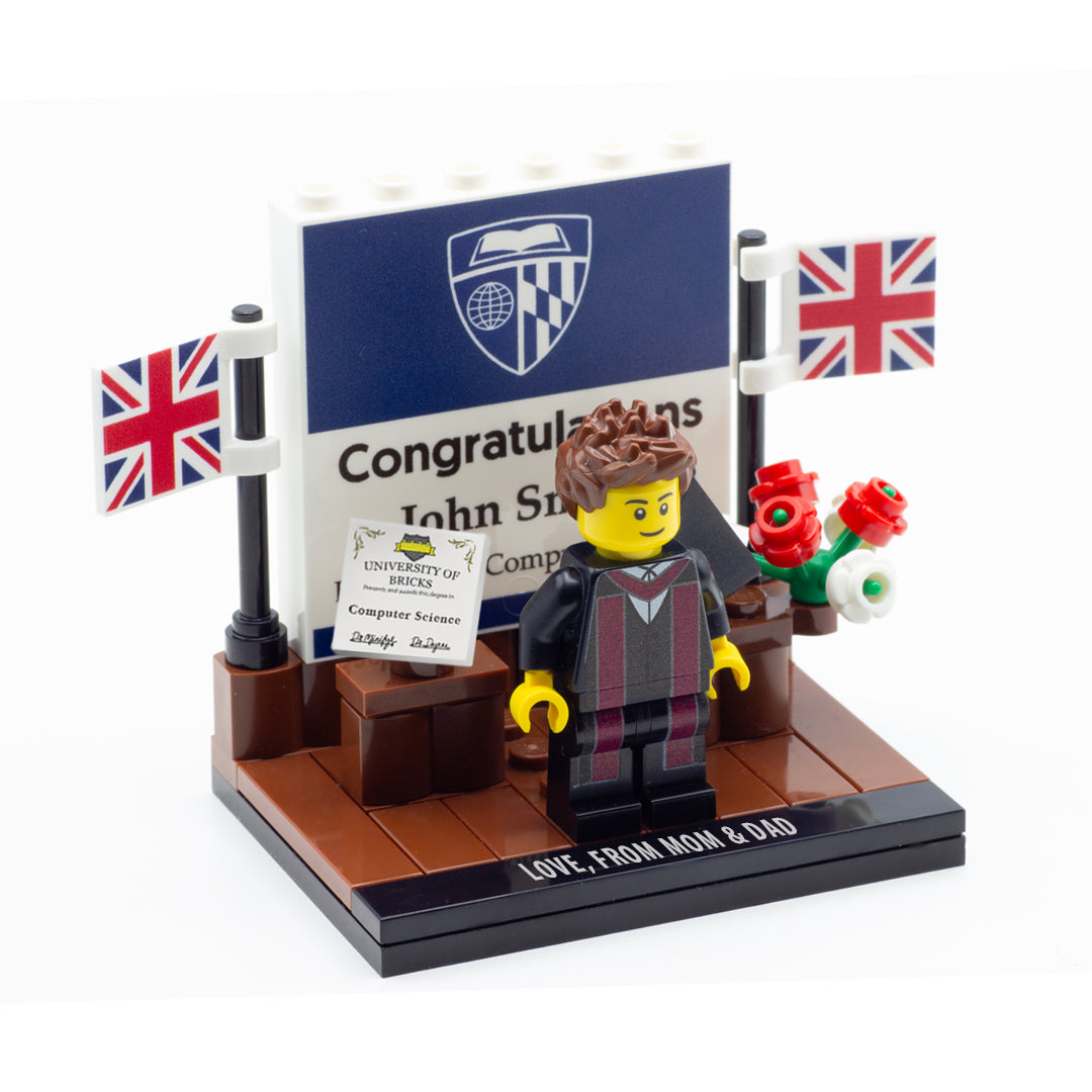This display is perfect for a customisable graduate minifig!