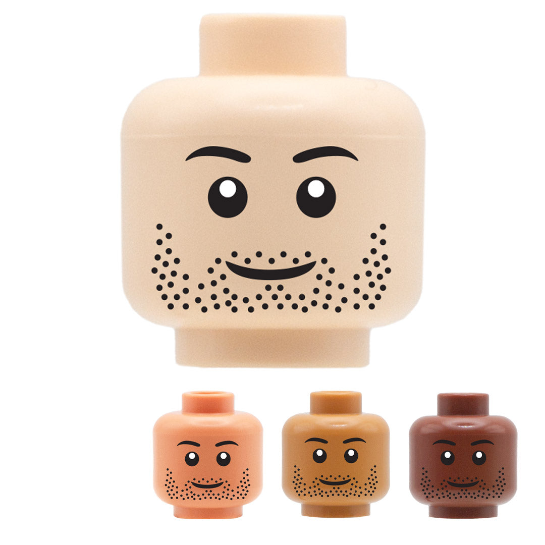 Black Stubble Smile - Custom Printed Minifigure Head