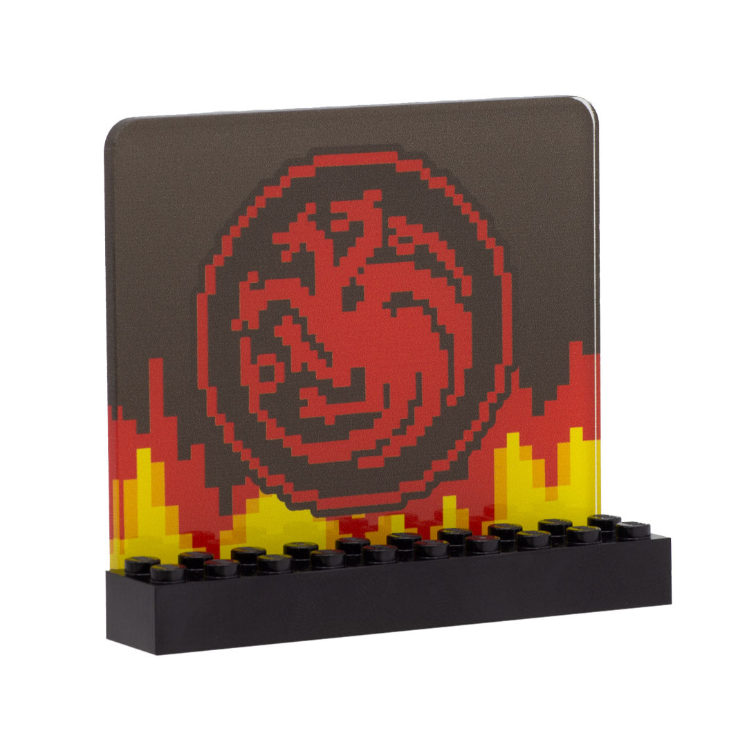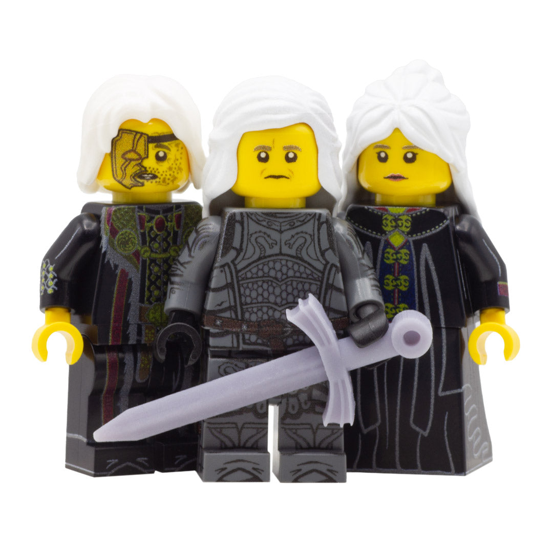 Who will sit on the throne? You decide with these minifigs inspired by the series 'House of the Dragon'. Here we have three Targaryens: Viseris I (comes with a double-sided head), Rhaenyra and Daemon (who comes with a custom 3D-printed sword).