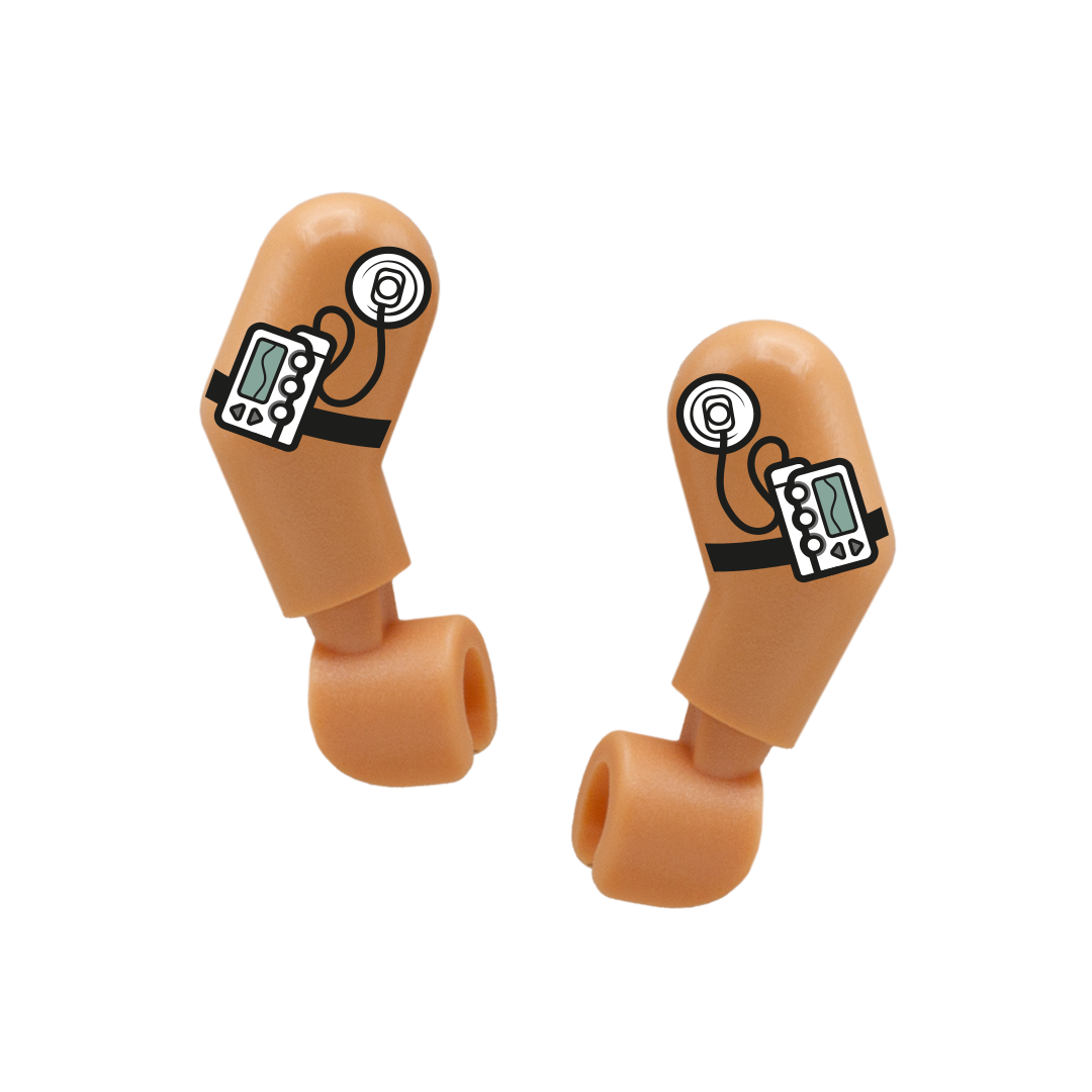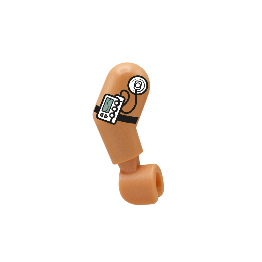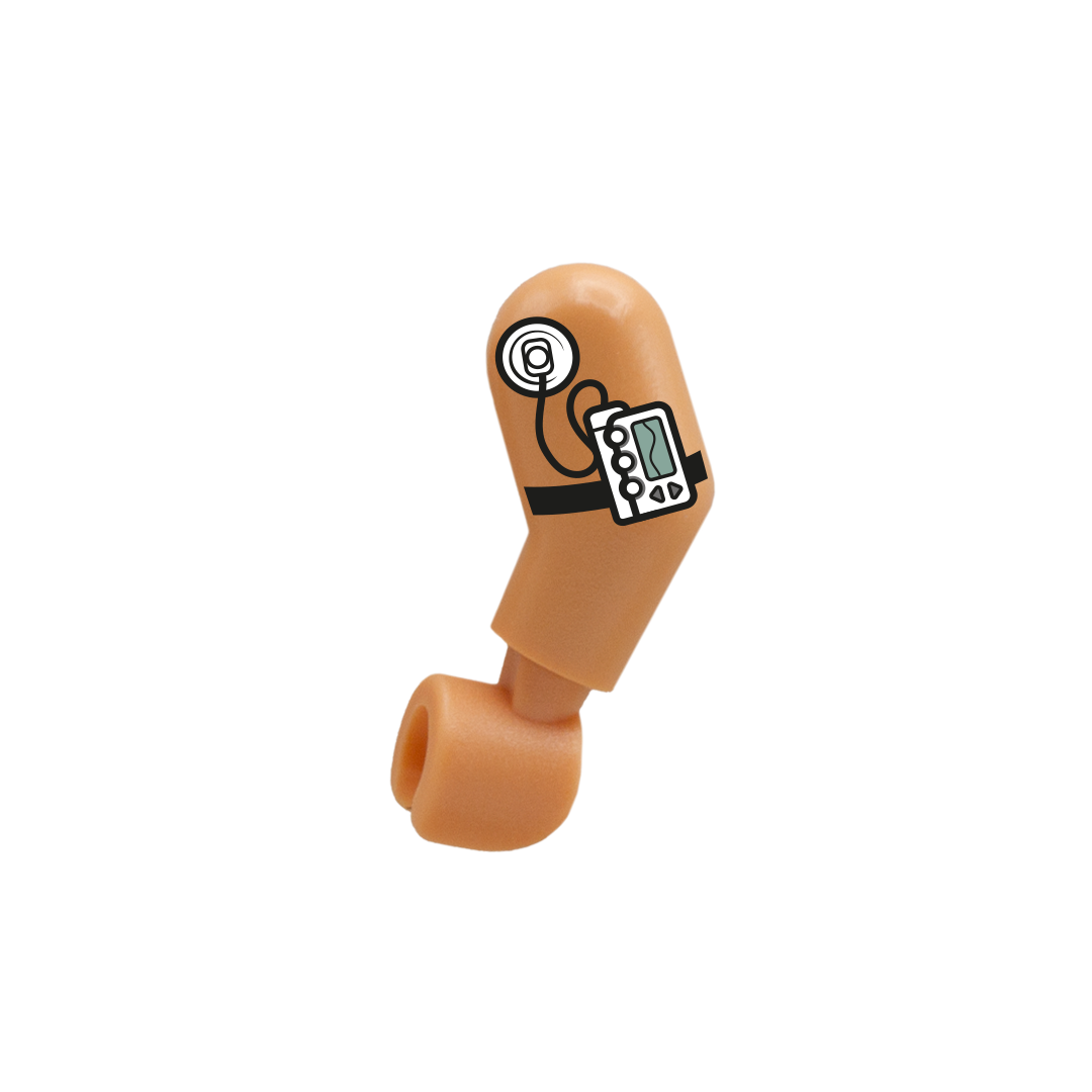 Insulin pump armband for your minifig. Available on both left and right arms and in various skin tones. You can also add a blank spare arm at an additional cost.