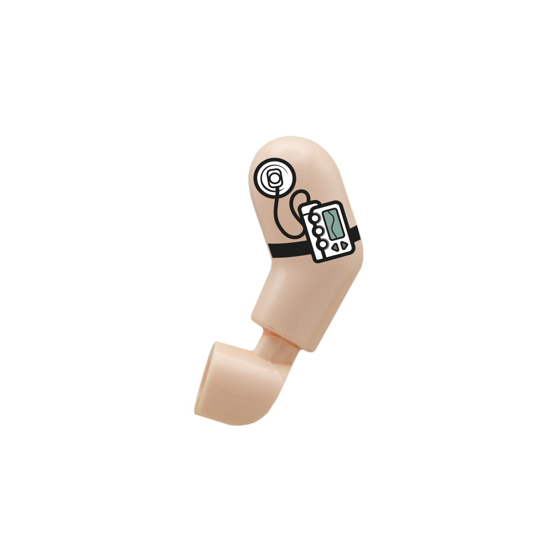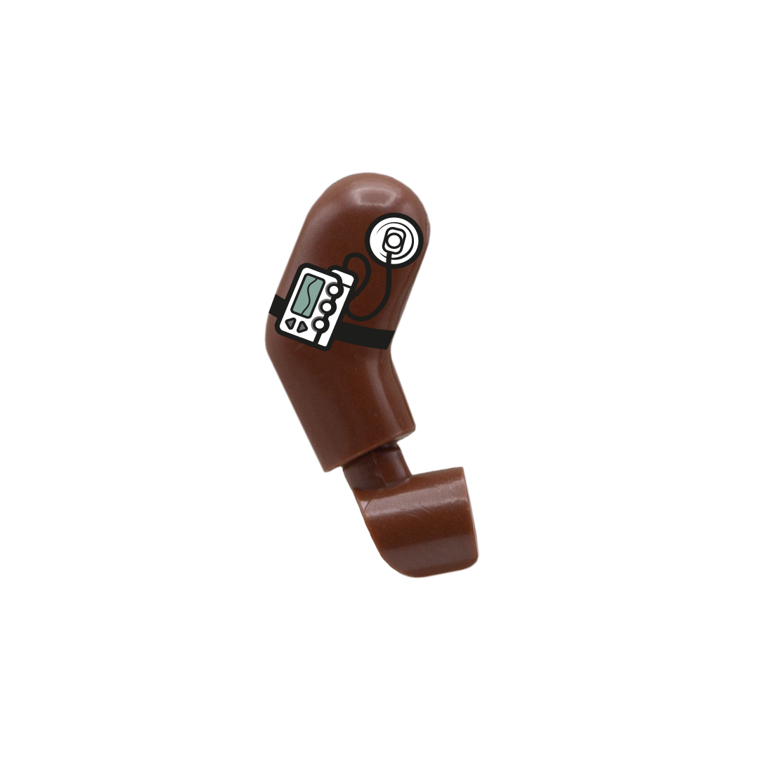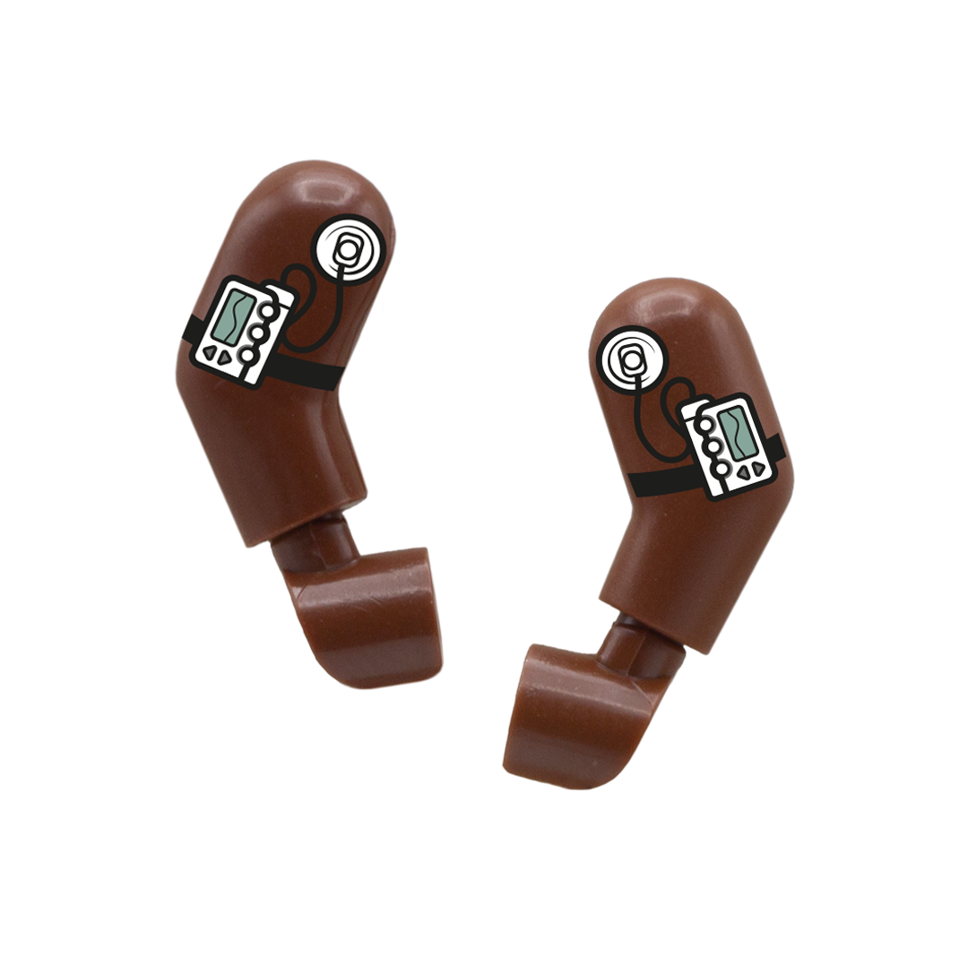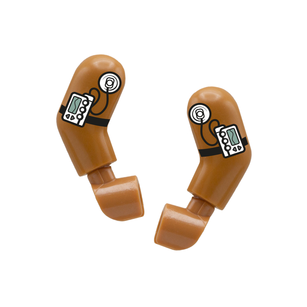Insulin pump armband for your minifig. Available on both left and right arms and in various skin tones. You can also add a blank spare arm at an additional cost.