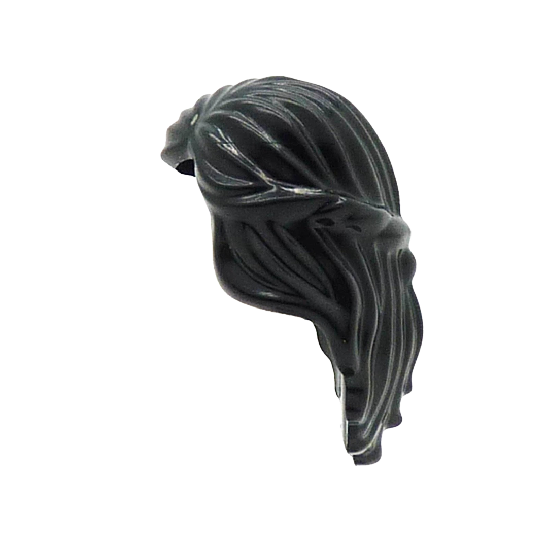 Black 'Princess' hair, a fairytale look for your LEGO minifigure. This long hair is mostly down, with some of the hair taken back in plaits / twists.