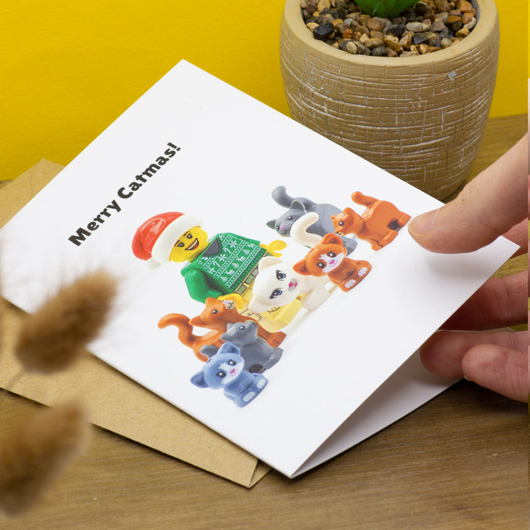 The perfect Christmas card for cat lovers and LEGO lovers alike.