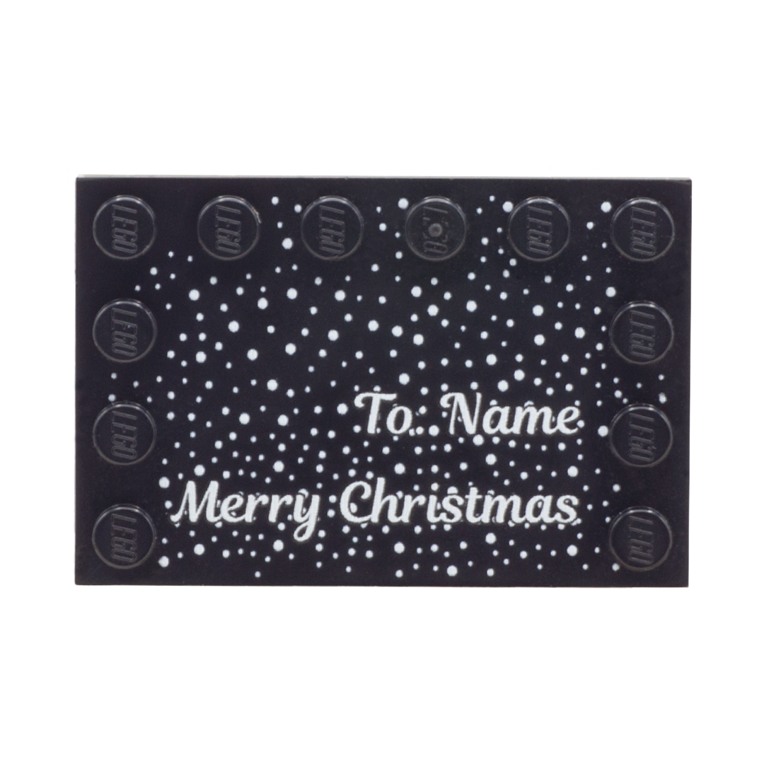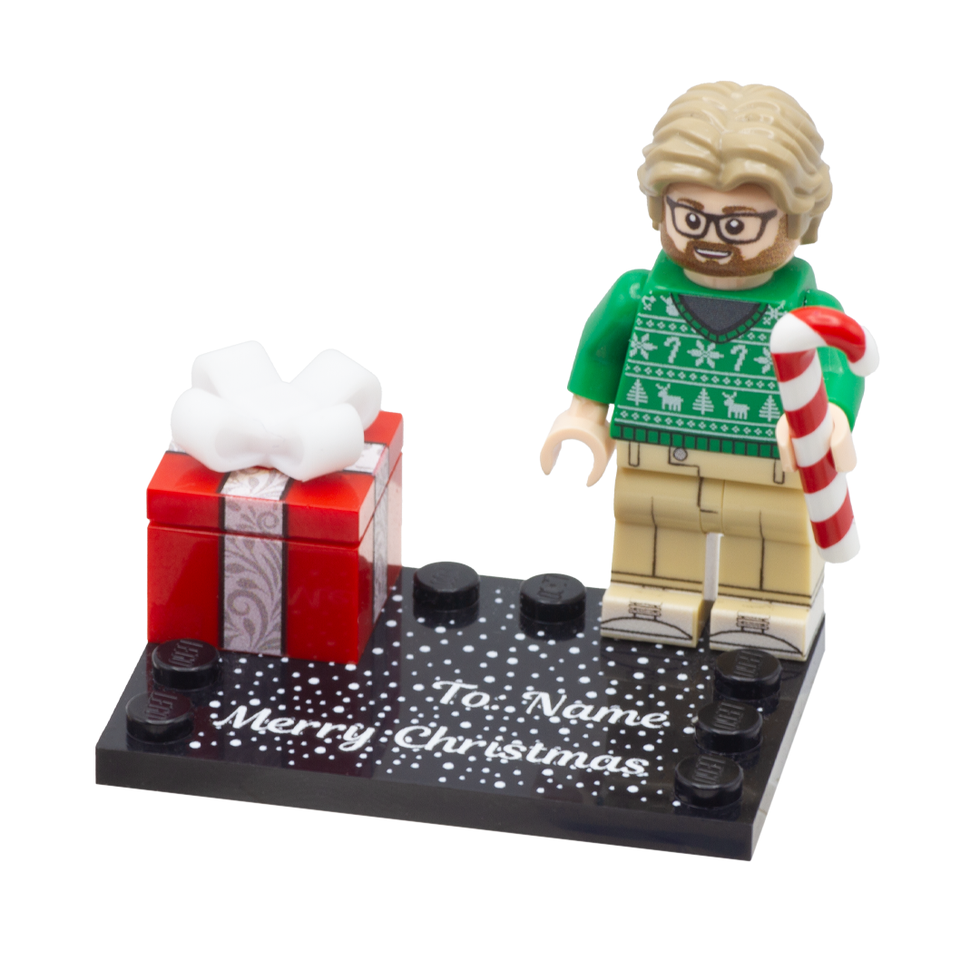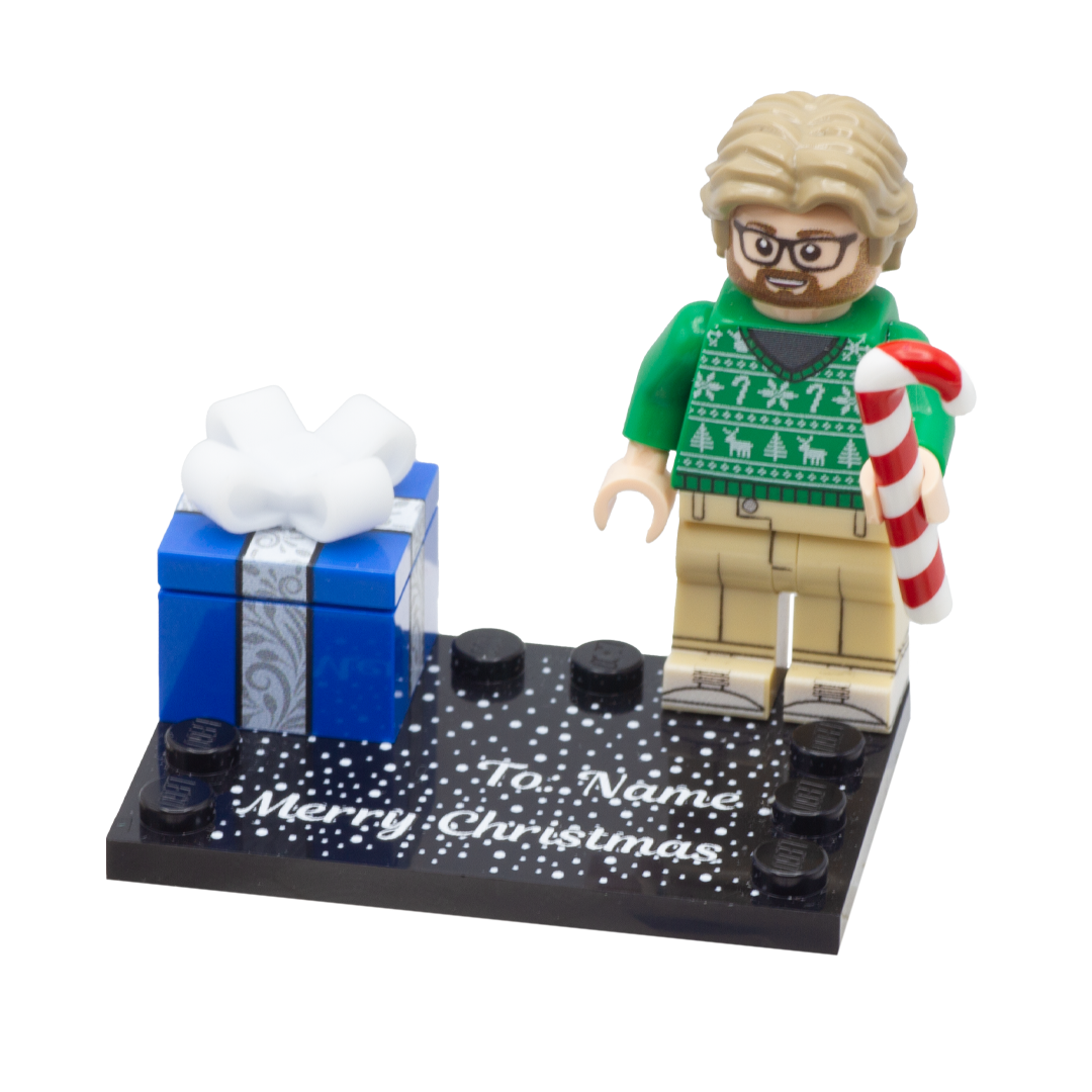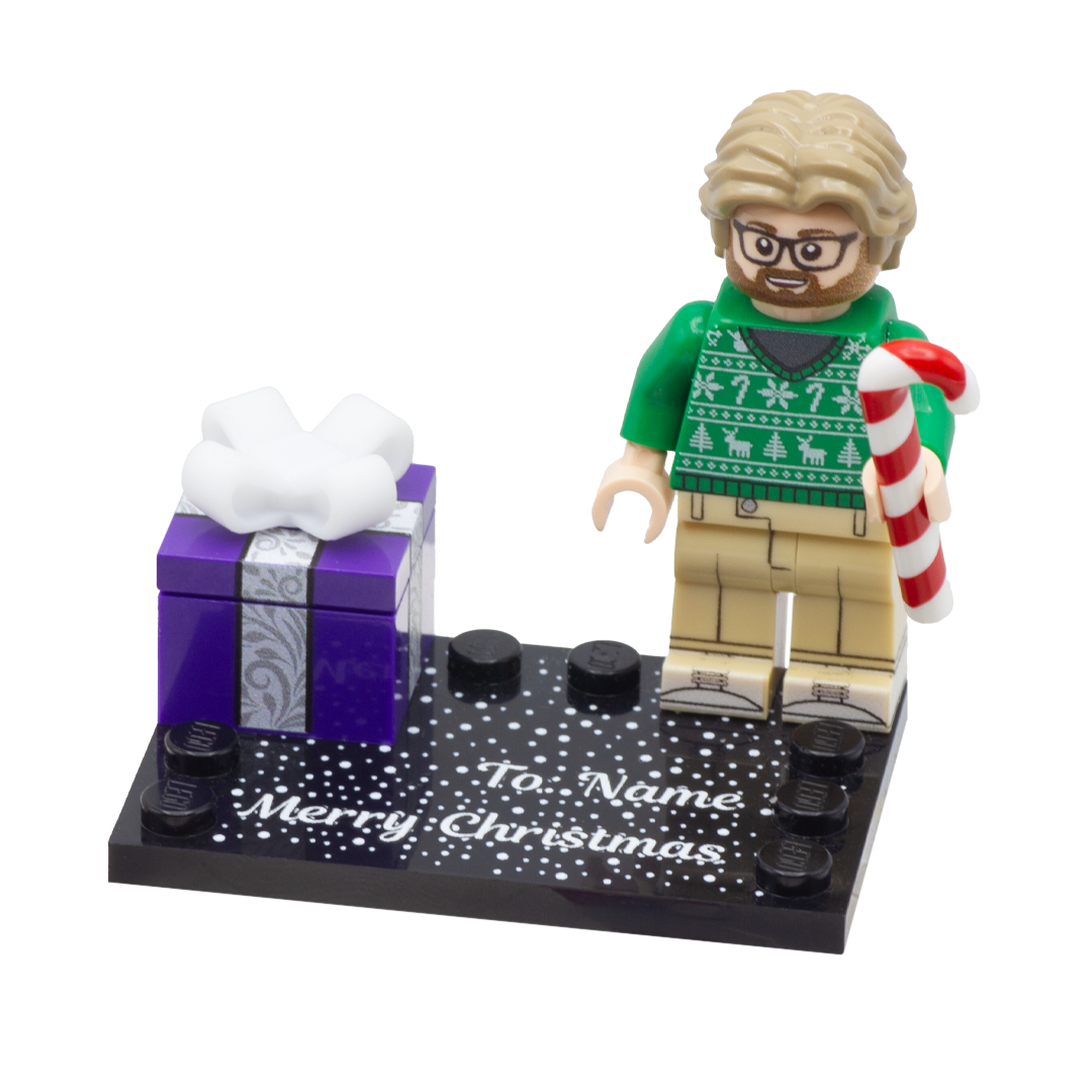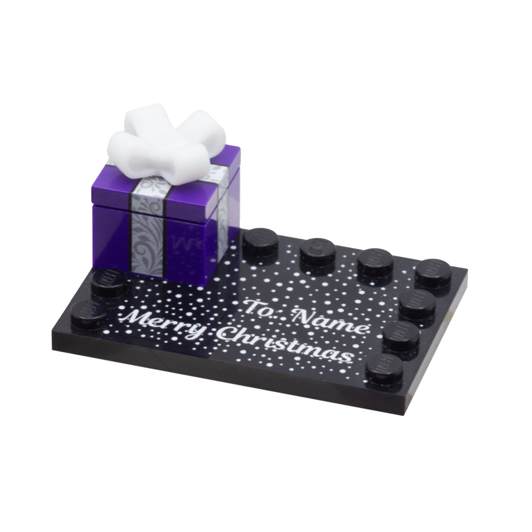 Add a name to this custom minifig baseplate and bring your present to life! Choose from a range of different present colours. Please note that the present accessory comes with a 3D-printed bow (suitable for display purposes only).