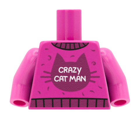 Pink Crazy Cat Person Jumper - Custom Design Minifigure Torso