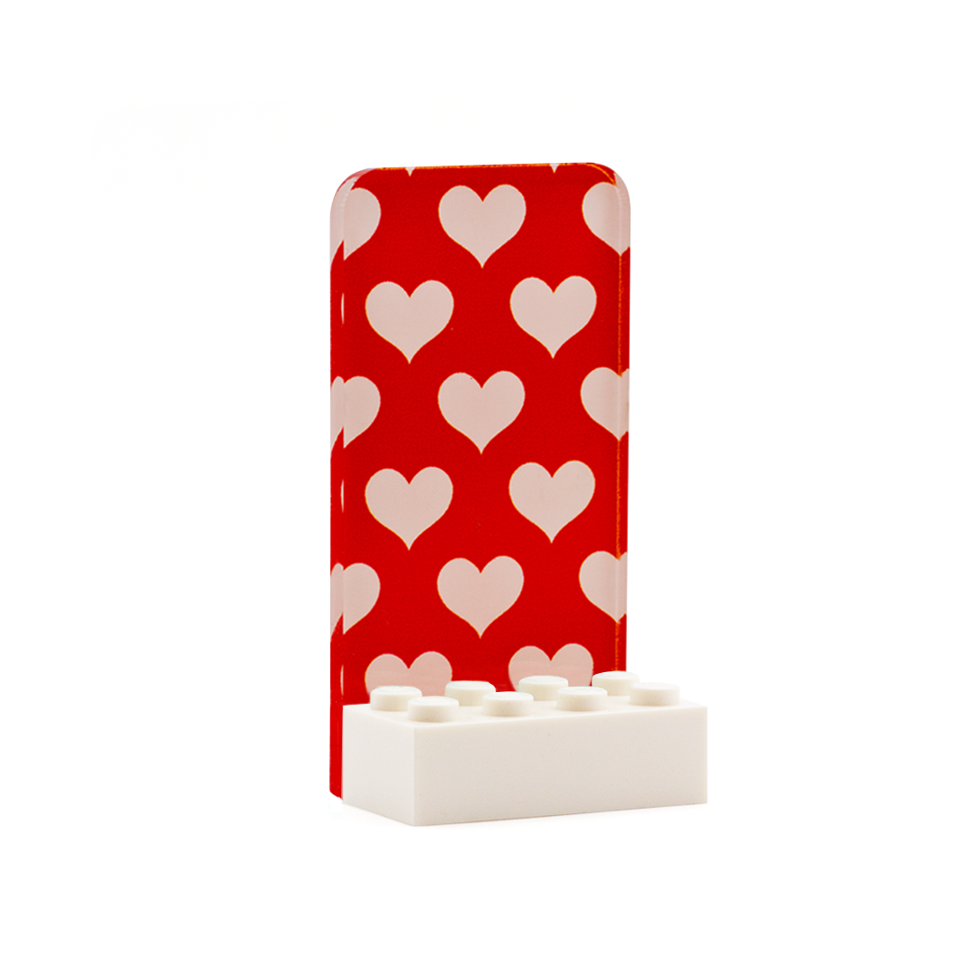 Red & White Hearts Single Display - Laser Cut Display with LEGO Brick