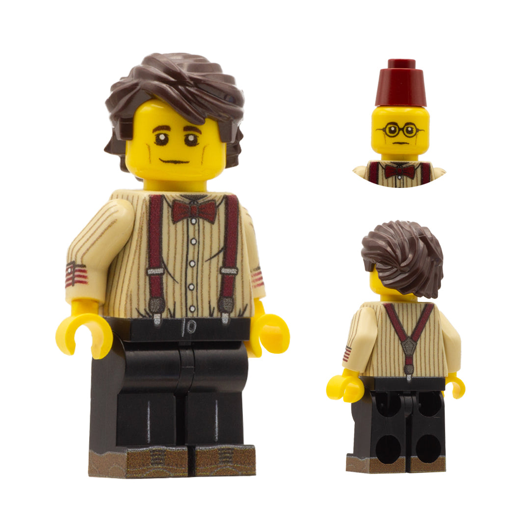 We have re-designed the 11th Time Lord in minifigure form! Designed by us and custom printed on genuine LEGO parts. Includes fez and a double-sided head.