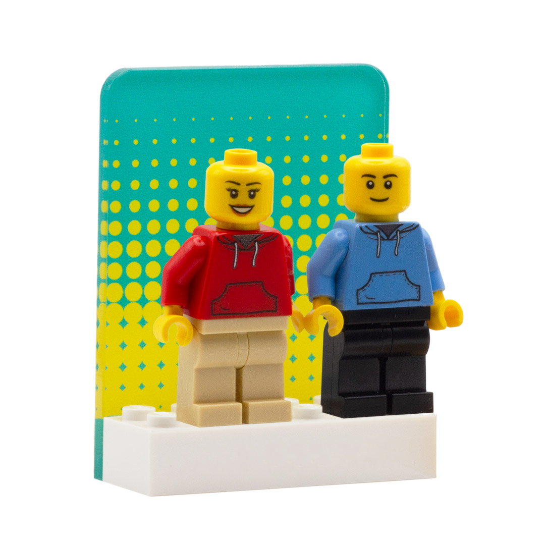 Screen Tone Yellow & Teal Couples Display - Laser Cut Display with LEGO Brick