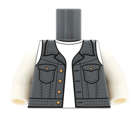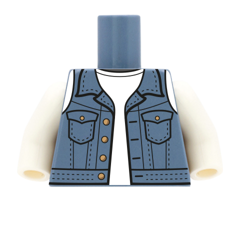 Sleeveless Denim Jacket over T-Shirt (Various Colours) - Custom Design Minifigure Torso